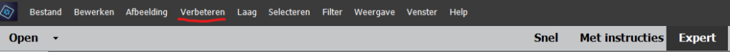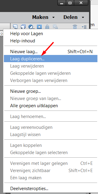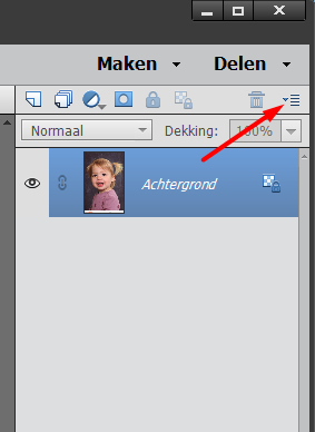 Daarna gaan we oefenen met enkele verbeteracties, maar voordat we iets gaan wijzigen in een foto, altijd eerst een duplicaat-laag aanmaken. Klik daartoe rechtsboven op de knop met de streepjes.