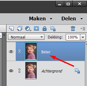 Geef de duplicaat-laag een naam -in dit geval ‘Beter’- en klik op oké, je ziet dan dit: