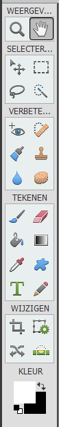 Na de introductie start docent Gerard Kievits het programma Photoshop Elements (versie niet belangrijk), en kiest voor de <Expert-modus>. De gereedschappen worden aangewezen en benoemd. De cursisten volgen op hun laptop.